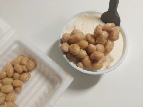 バニラの香りで納豆の匂いはほぼ消えます。豆入りアイス、という感じ。